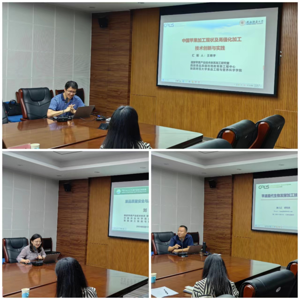 考察結(jié)束后,國家蘋果體系加工研究室3位崗位專家受邀分別以“中國蘋果加工現(xiàn)狀及高值化加工技術(shù)創(chuàng)新與實踐”、“蘋果現(xiàn)代生物發(fā)酵加工技術(shù)創(chuàng)新與應用”和“果品質(zhì)量安全與品質(zhì)評價研究進展”為題做了學術(shù)報告,并與參會科技人員進行積極地互動交流。