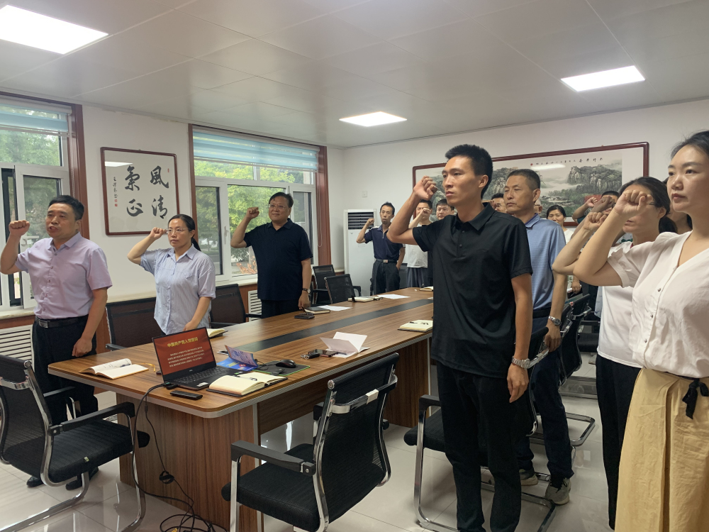 2024年7月1日,我所組織中層以上黨員干部開展“重溫入黨誓詞 凝聚奮斗力量”主題黨日活動暨下半年工作部署會。會上,黨員面對鮮紅的黨旗,莊嚴宣誓,龐昭進所長主持,鄢新民副所長領誓。在部署會上,龐昭進回顧了五年來帶領全體干部職工取得的成績和經驗,梳理了目前研究所存在的問題與短板,結合自身工作經歷提出了意見建議和努力方向,他勉勵大家為研究所高質量發展接續奮斗。鄢新民詳細部署了各部門下半年重點工作,他強調,要倍加珍惜現在的大好形勢,搶抓機遇,不忘初心,不負重托,繼續建功立業。