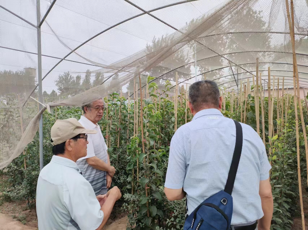 伴野先生還到我所試驗地實地進行了調查。對實生苗盡快度過童期的管理技術、苗頭優系的高接管理技術提出建議,共同制定了蘋果整形拉枝管理技術方案。梨砧木課題組現場介紹了選出的矮化砧木為基砧嫁接主栽品種生長現狀,展示了不同濕度處理嫩枝扦插愈傷組織生成情況。