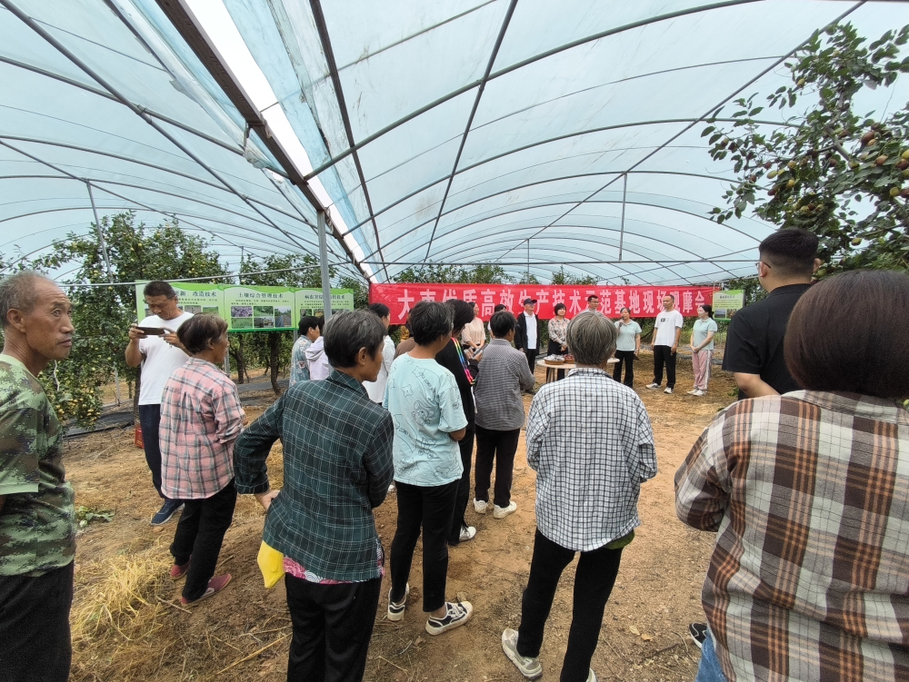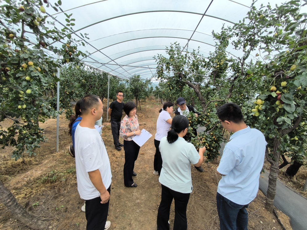 2024年9月10日,我所在贊皇縣舉辦大棗優(yōu)質(zhì)高效生產(chǎn)技術(shù)示范基地現(xiàn)場觀摩活動。觀摩活動同時邀請省農(nóng)業(yè)農(nóng)村廳特色產(chǎn)業(yè)技術(shù)指導(dǎo)總站劉敏彥站長、省林業(yè)和草原科學(xué)研究院正高級工程師王振亮及省林業(yè)和草原技術(shù)推廣總站正高級農(nóng)藝師鄭麗錦組成考察組對實施效果進行了現(xiàn)場考察。專家對所承擔(dān)的示范基地項目開展的工作表示肯定,一致認為,示范效果顯著,科技服務(wù)及時到位,現(xiàn)場宣傳技術(shù)標牌醒目,依托的大河道大棗專業(yè)合作社在當(dāng)?shù)卣J可度高,對贊皇棗產(chǎn)業(yè)的發(fā)展起到了較強的輻射帶動作用。院科技成果轉(zhuǎn)化部、石果所、贊皇縣林業(yè)局有關(guān)負責(zé)同志,以及大棗種植大戶、技術(shù)人員等50余人參加活動。