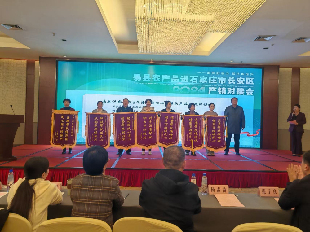 2024年10月28日上午,副所長楊素苗受邀出席由長安區人民政府、易縣人民政府聯合舉辦的易縣農產品進石家莊市長安區產銷對接會。會上,易縣文旅局、農業農村局、發改局等單位對易縣旅游、招商引資、農業產業發展等進行了宣傳,企業代表推介了蘋果、柿子、板栗、花生等優質農產品。在答謝環節,易縣農業農村局向石家莊果樹研究所贈送了錦旗,對研究所給予的科技幫扶表示感謝。
