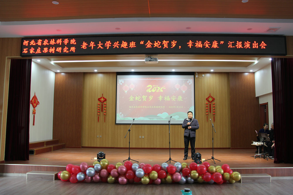 “祥龍辭歲福澤厚,靈蛇納祥好運(yùn)來(lái);蛇舞新春祥瑞繞,齊聚一堂賀新春”。2025年1月22日上午,我所退休支部成功舉辦了老年大學(xué)興趣班“金蛇賀歲,幸福安康”匯報(bào)演出會(huì),所長(zhǎng)鄢新民、副所長(zhǎng)楊素苗應(yīng)邀出席并觀看了演出。所長(zhǎng)鄢新民代表所領(lǐng)導(dǎo)班子發(fā)表了熱情洋溢的致辭。