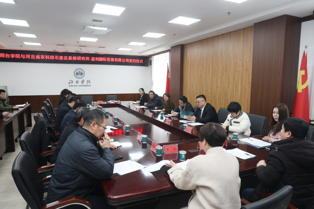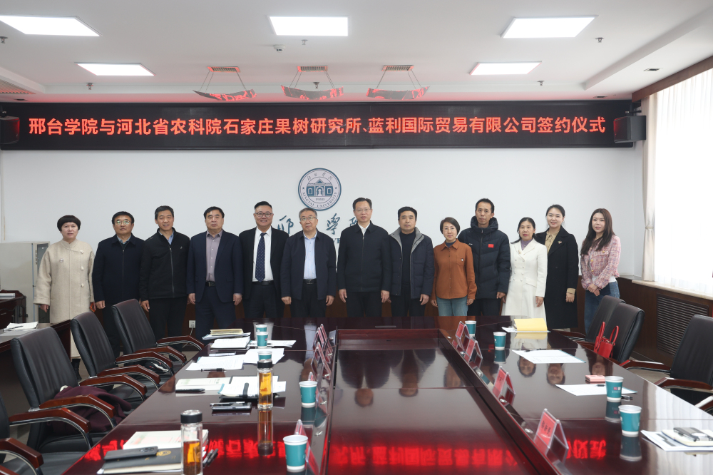 2025年2月13日,鄢新民副所長帶隊,植保研究室主任徐國良研究員、辦公室副主任李婭一行3人赴邢臺學院參加合作簽約儀式。邢臺學院黨委書記賈云霄、校長蔡振禹、邢臺市僑聯有關領導及邢臺學院相關部門、院系領導出席簽約儀式。