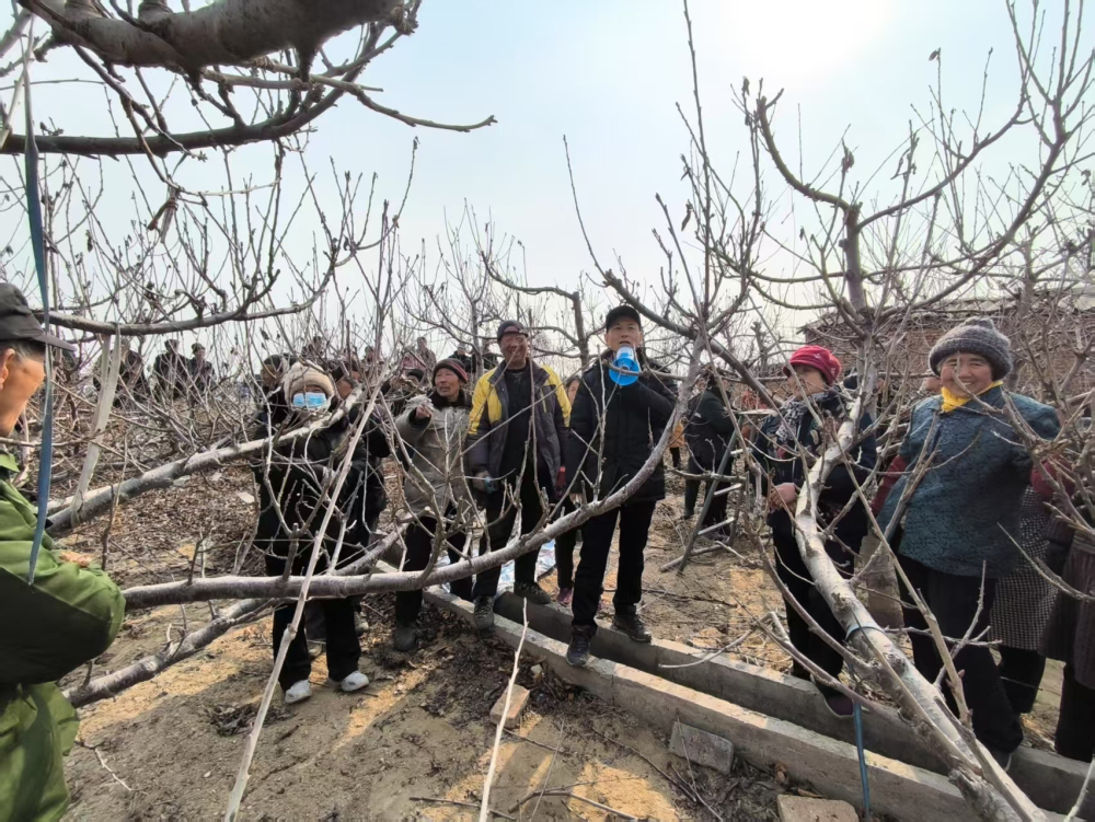2025年2月20日,在贊皇縣土門鄉(xiāng)政府大力配合下,楊素苗副所長(zhǎng)帶隊(duì),組織櫻桃專家馬文會(huì)研究員、梨專家李勇研究員、蘋果專家徐國(guó)良研究員、杏專家武曉紅研究員、桃專家王越輝研究員、葡萄專家魏建國(guó)高級(jí)農(nóng)藝師、草莓專家楊雷研究員等相關(guān)專家到贊皇土門鄉(xiāng)開(kāi)展果樹春季修剪技術(shù)現(xiàn)場(chǎng)指導(dǎo)與培訓(xùn),贊皇土門鄉(xiāng)黨委書記孫粒杰、鄉(xiāng)紀(jì)委書記楊利粉等鄉(xiāng)鎮(zhèn)領(lǐng)導(dǎo)親臨現(xiàn)場(chǎng)組織,分別就土門鄉(xiāng)千根村、大橋莊村、寺峪村、劉家莊村等種植的櫻桃、桃、梨、杏、蘋果及溫室櫻桃等果樹進(jìn)行了春季修剪現(xiàn)場(chǎng)指導(dǎo)與培訓(xùn),并現(xiàn)場(chǎng)解答了果農(nóng)提問(wèn);草莓專家現(xiàn)場(chǎng)指導(dǎo)了草莓大棚管理及病蟲害防治技術(shù);葡萄專家現(xiàn)場(chǎng)指導(dǎo)了葡萄大棚春季管理技術(shù)。