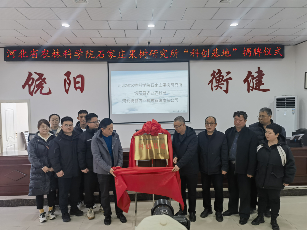 2025年3月3日,我所2024年度新入職人員基地實習正式拉開帷幕,以此為契機,我所“科創基地”在饒陽縣衡健農業公司正式揭牌,饒陽縣農業農村局相關領導出席揭牌儀式。科創基地的設立,標志著我所向著推動果樹產業高質量發展邁出了堅實一步,將在成果示范、科技服務和人才培養等多方面發揮關鍵作用,為果樹產業發展注入新動力。