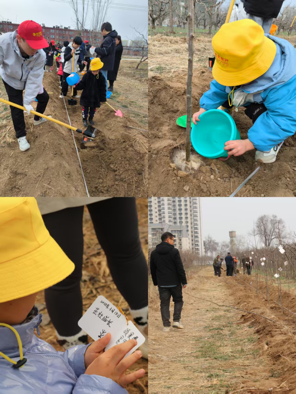 最后,25組親子家庭到梨研究室試材地進行梨實生苗種植活動。梨研究室王晉博士詳細講解了梨苗的種植要點,并進行了實地操作。講解完畢后,孩子們手持小鐵鍬和水桶,同家長們一起合力完成挖坑、栽種、填土、澆水等每一個步驟,并將寫有自己名字的卡片掛在梨苗上。在整個種植過程中,王晉博士始終在一旁密切關(guān)注,隨時提供專業(yè)的技術(shù)指導,耐心解答大家提出的各種疑問。活動現(xiàn)場一片歡聲笑語,洋溢著溫馨與幸福的氣息。在親手種植梨苗的過程中,孩子們不僅學到了實用的果樹知識與技能,更深刻體會到了勞動的價值和大自然的神奇力量。