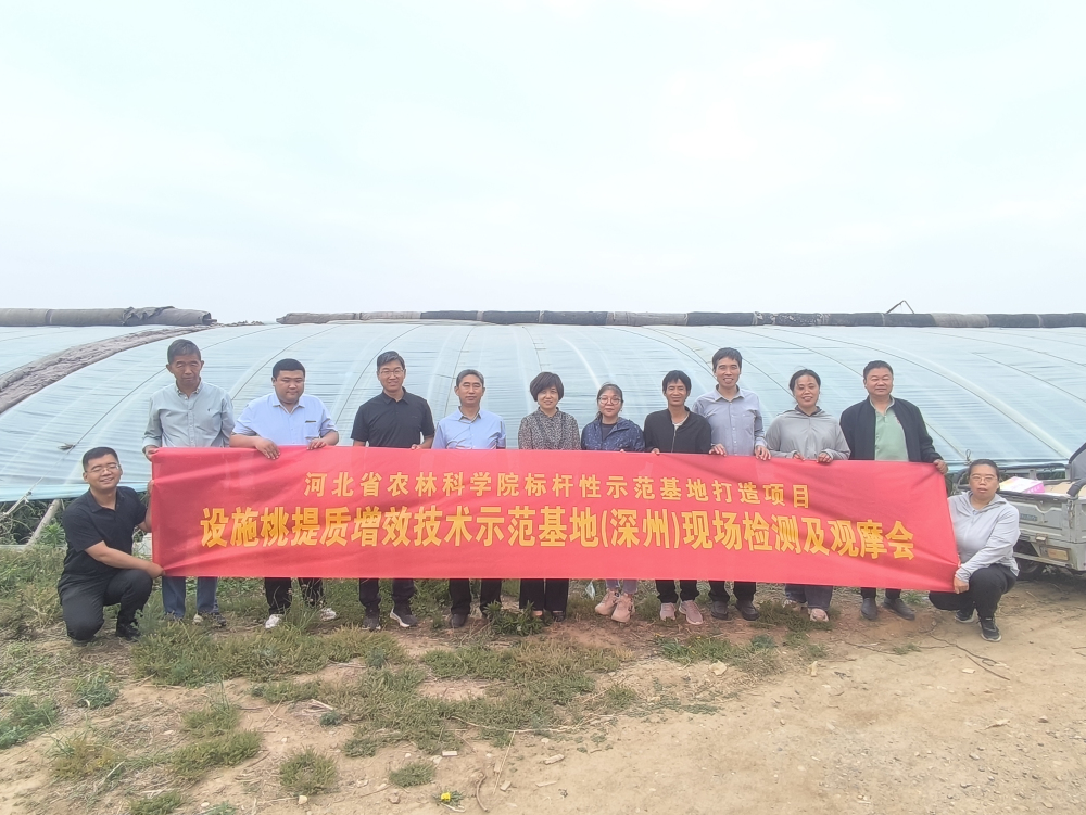 2025年5月22日,院標桿性示范基地打造項目“設施桃提質增效技術示范基地”在深州市深寶蜜桃基地召開現場檢測及觀摩會,省農業農村廳特色產業技術指導總站劉敏彥研究員、河北科技師范學院武軍凱教授、衡水市果樹技術推廣站張海章正高級工程師及河北省農林科學院成果轉化部、石家莊果樹研究所、深州市農業農村局、深寶蜜桃基地等有關人員出席參加。
