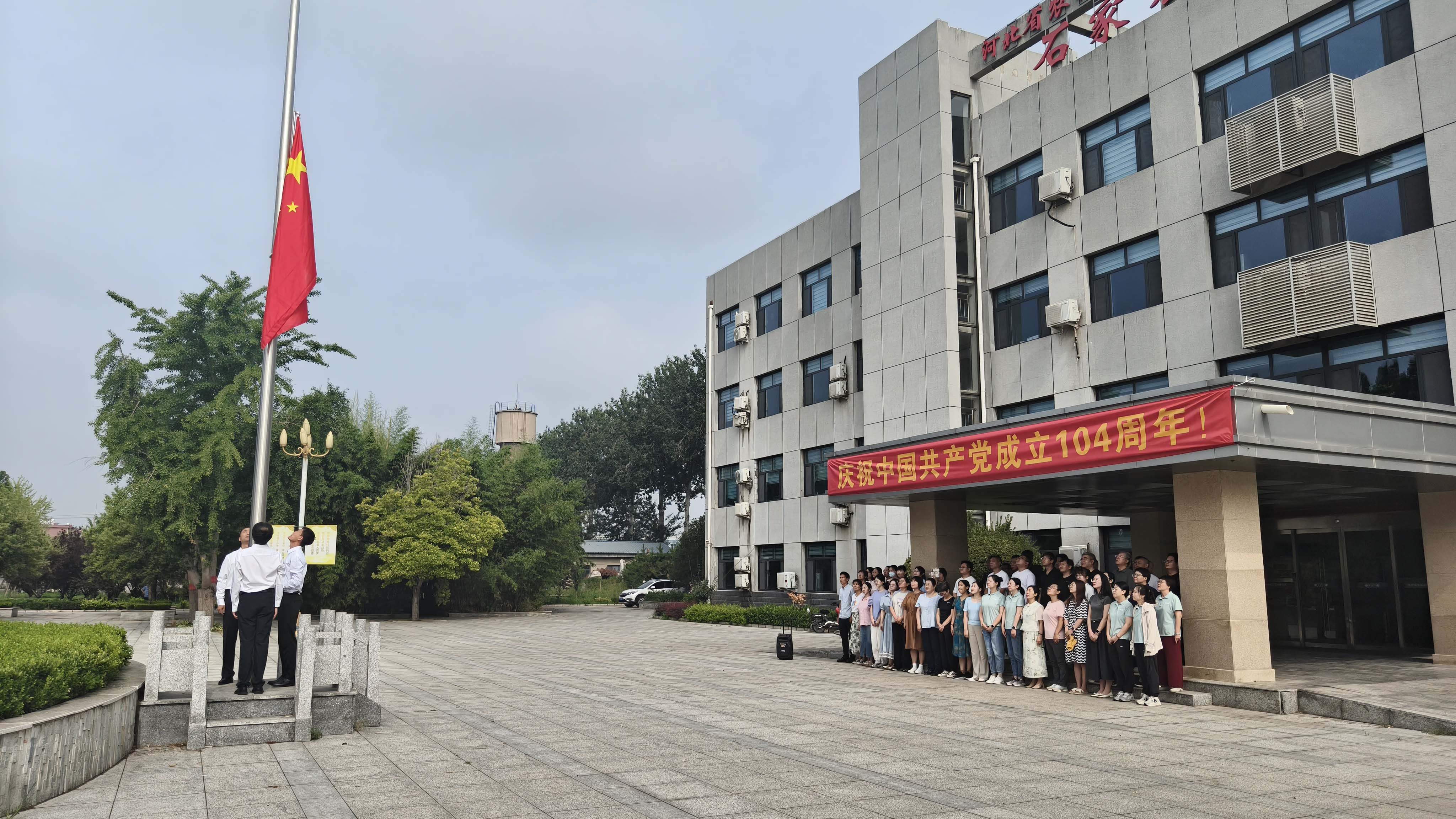 為慶祝中國共產黨成立104周年,石家莊果樹研究所黨總支在7月1日當天組織開展了“初心不改 奮勇向前”升國旗儀式。