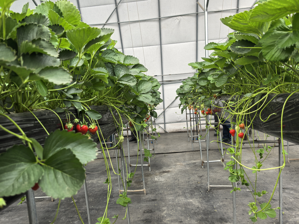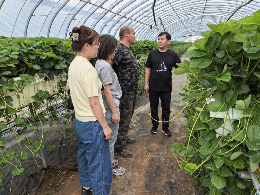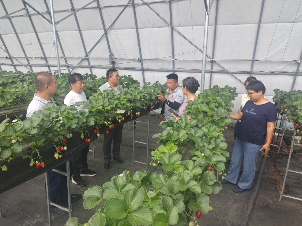 2025年6月26日,我所草莓團隊邀請中國園藝學會草莓分會理事長、北京市農林科學院林業果樹研究所草莓研究室主任孫健一行來到我所崇禮區草莓基地-莓好生態科技有限公司(莓好莊園)調研指導。專家一行實地查看并品鑒自育夏秋草莓品種‘冀香’。‘冀香’是楊雷團隊培育的草莓新品種之一,在冷涼區作為夏秋草莓栽培,成熟期早、產量高。莓好莊園在2024年與我所簽訂了草莓新品種‘冀香’的品種經營權轉讓協議,獲得了‘冀香’在河北省的獨家經營權。目前‘冀香’正值掛果期,植株長勢好,果實外形漂亮,酸甜可口,香味濃郁,其品質表現優于現行的主栽美國四季品種‘蒙特瑞’。孫健理事長一行對‘冀香’給予了好評及認可,同時針對夏季如何進行草莓肥水管理、植株管理、提高品質等方面給出了合理的建議。