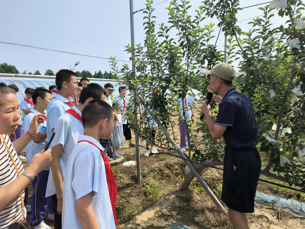 活動伊始,同學們在科研人員的帶領下走進田間地頭,先后探訪了梨園、蘋果園與草莓大棚。科研人員現場講解了梨單穴雙株、蘋果多中心干形、草莓立體栽培等特色栽培模式,通過直觀展示與細致講解,讓同學們近距離了解到果樹育種與現代栽培技術要點,將抽象的農業知識轉化為鮮活的實踐認知。
