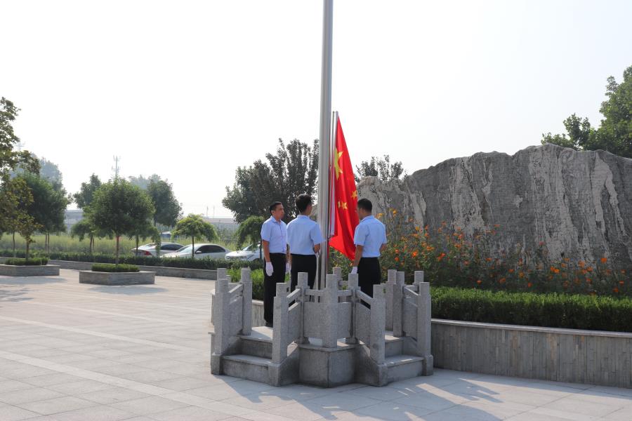 講話后,舉行了升國(guó)旗儀式,三名旗手邁著整齊的步伐入場(chǎng),伴著激昂雄壯的國(guó)歌,五星紅旗冉冉升起,全體職工向國(guó)旗行注目禮。